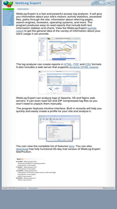 iis, apache web log analyzer software. freeware and pro edition. website statistics trends in daily/weekly reports