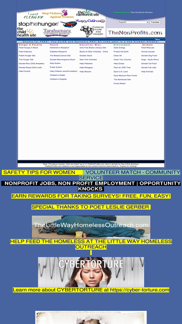 the nonprofits - click on a link to donate free to good causes and charities at no cost to you! - sponsors pay so your donations are free. dozens to choose from! also non profit and volunteer links and information.