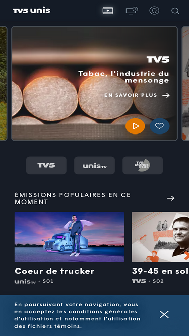 60%Des primeurs et des nouveautés chaque mois. Émissions, séries, films, documentaires en français : des milliers d’heures de contenus à regarder où vous voulez.