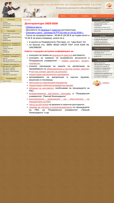 100%процедури за развитие на академичния състав на пловдивски университет "паисий хилендарски" – заемане на академична длъжност "асистент", "главен асистент", "доцент" и "професор", придобиване на образователна и научна степен "доктор" и научна степен "доктор на науките"