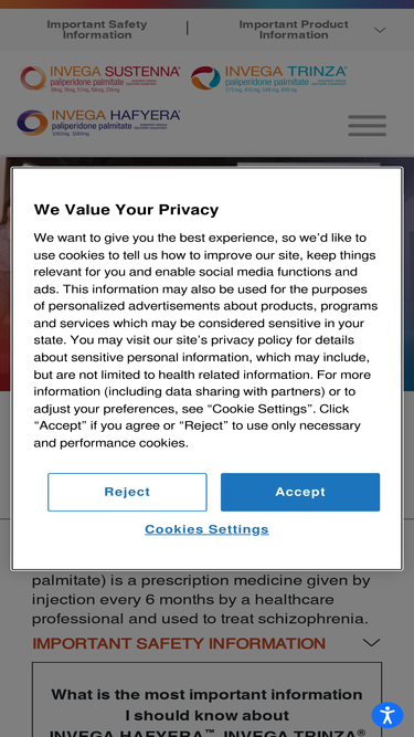 83%the official consumer website for the invega sustenna® & trinza® portfolio of long-acting injections for schizophrenia. see full prescribing & safety info, including boxed warning.