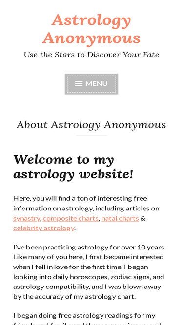 Astrology Anonymous contains free astrology articles to teach you about zodiac signs, birth charts, synastry, compatibility, predictions, and horoscopes