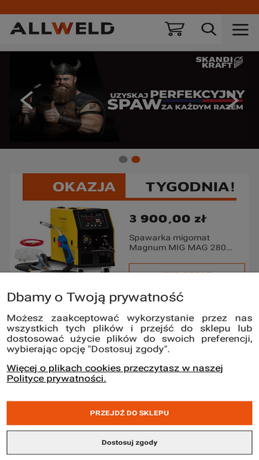 96%Profesjonalny sklep spawalniczy z 15 letnim doświadczeniem. Oferta Allweld pl to spawarki TIG AC DC, MMA, migomaty MIG MAG, przecinarki plazmowe czy zgrzewarki spottery. Oficjalny dystrybutor spawarek Magnum, Sherman, Ideal, Esab, Spartus, EWM