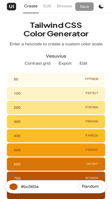 100%Generate, edit, save and share Tailwind CSS color shades based on a given hexcode or HSL color.