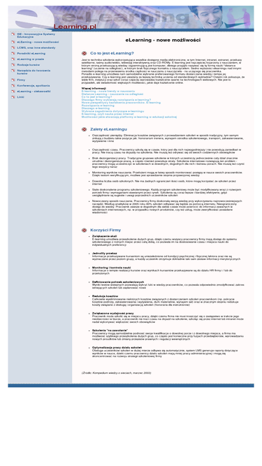 strona poświęcona elearning'owi - czyli technice szkolenia wykorzystującej wszelkie dostępne media elektroniczne, w tym internet, intranet, extranet, przekazy satelitarne, taśmy audio/wideo, telewizję interaktywną oraz cd-romy