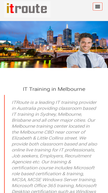 100%itroute is a classroom based it training & certification provider sydney (02) 9262 7088 offers mcsa, mcse, ccnp, ccna, ccna voice, ccna security, itil, comptia a+, network+, security+ and software testing at affordable price