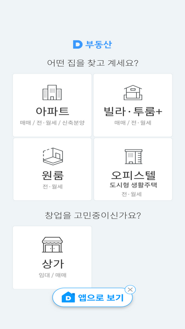 아파트, 분양, 원룸, 빌라, 오피스텔까지 모든 정보를 확인해보세요