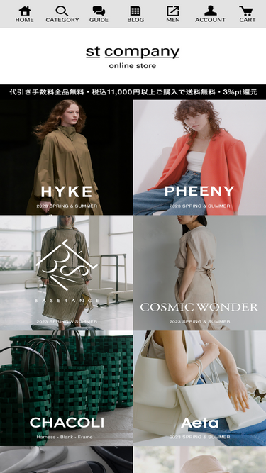 97%st companyオンラインストアはhyke(ハイク)やaeta(アエタ)、pheeny(フィーニー) など厳選したブランドを取り扱う公式通販サイトです。代引き手数料無料!一万円以上購入で送料無料!