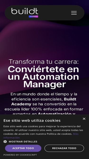 55%En Buildt Academy, te enseñamos desde cero cómo convertirte en un experto en automatizaciones, capaz de optimizar flujos de trabajo, integrar herramientas digitales y hacer que los sistemas trabajen por ti aplicando Inteligencia Artificial.