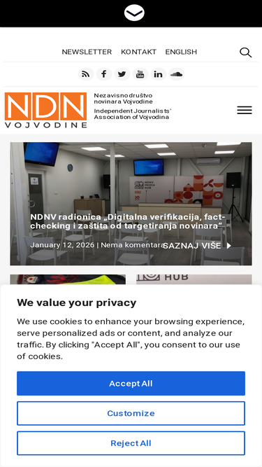 100%Nezavisno društvo novinara Vojvodine (NDNV) je neprofitna organizacija osnovana i registrovana 17. januara 1990. godine. Prema statutu udruženja misija NDNV-a je postizanje, negovanje i razvijanje slobodnog, objektivnog i profesionalnog novinarstva, zalaganje za zaštitu prava i interesa novinara, kao i zalaganje za vrednosti građanskog društva.