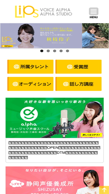 73%1986年より、声優ナレーター・タレント事務所をかまえ、静岡を拠点にテレビ・ラジオの番組、cm制作等を行っています。近年では話し方教室、アルファミュージック声優スクールの運営や、ビジネス向けの話し方セミナー講座の開催。また、silent hill recordsと静岡声優養成所より歌手・声優・タレントオーディションの開催、新人の育成を行なっています。