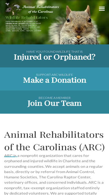 Animal Rehabilitators of the Carolinas (ARC) is dedicated to the rehabilitation and release of orphaned and injured wildlife in Charlotte, North Carolina and surrounding NC and SC counties.