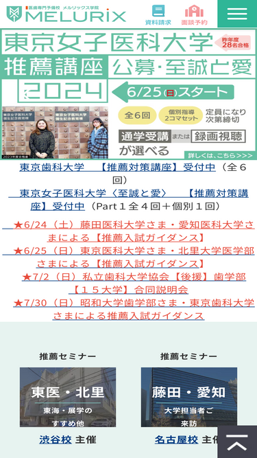 83%医学部歯学部受験に関するお問い合わせについてまとめています。その他、医学部受験に関するご相談や、メルリックス学院の詳細についてのご質問があれば、随時承っております。
