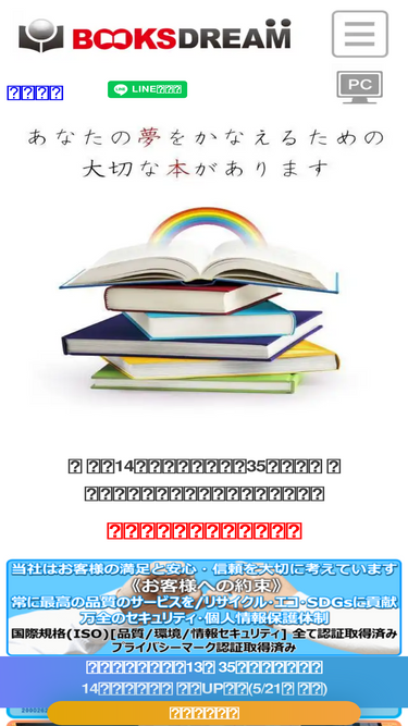 85%弊社、株式会社ブックスドリームでは、ご利用頂くお客様への約束として「常に最高・最善のサービス/リサイクル・エコ・SDGsに貢献/万全のセキュリティ」を掲げ、品質・環境・情報セキュリ...