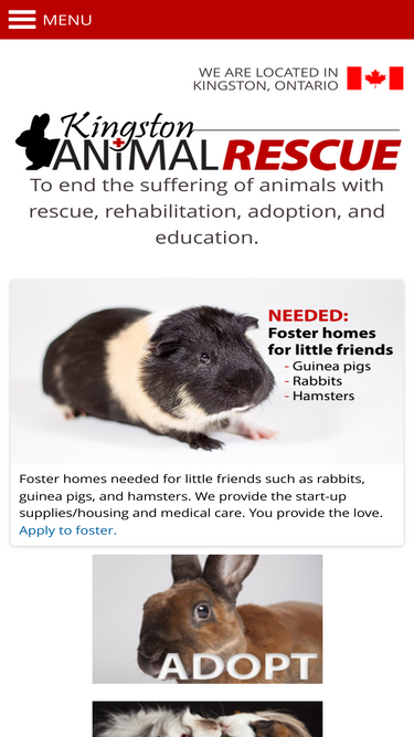 80%Q: Where is your facility located? Kingston Animal Rescue operates through a network of foster homes. We do not own or operate a shelter facility. We don’t even have an office! Q: Are you a registered charity? Yes! Kingston Animal Rescue is a registered charity. Tax receipts are issued for donations of $20 or more and are mailed or emailed out following the end of the calendar year. Our CRA registration number is 83204 4802 RR0001. Q: Where do donations to the rescue go? The vast majority of donations to KAR go directly to animal medical care, which is by far our largest expense.