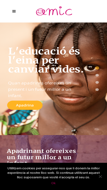 100%Apadrinament d’un infant Gràcies a la teva aportació un nen o nena podrà millorar el seu futur. Doncs li ofereixes una educació, alimentació i una sanitat de qualitat. L’apadrinament que realitza AMIC és directe, és a dir, cada padrí permet que un nen o nena vagi a l’escola, disposi dels seus llibres i del seu uniforme, així...