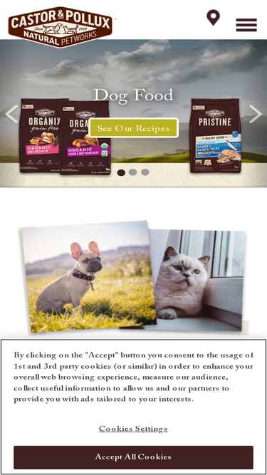 100%Merrick Pet Care provides wholesome dog and cat food recipes featuring USA-sourced ingredients including real meats and fresh produce, all made in Hereford, TX.