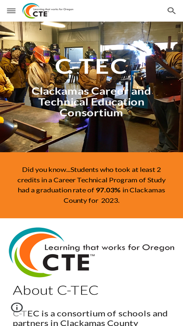 2024-25 Clackamas Technical Education Consortium Overview C-TEC Consortium Agreement 2025-26 2025-26 Consortium Handbook v.1.3 C-TEC 2025-27 Needs Assessment and Perkins Grant Application Consortium Goals Explore and advance work-based learning Develop messaging to students and families about CTE