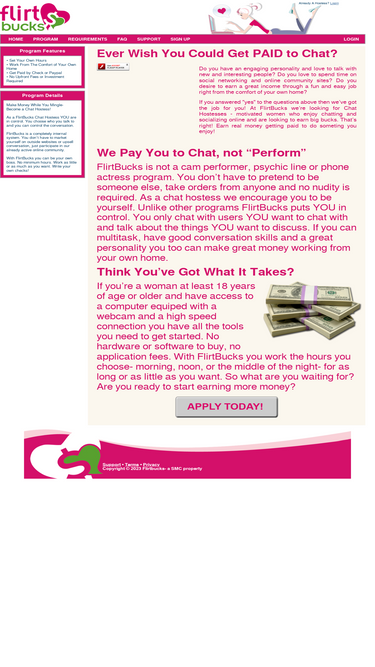 88%flirtbucks - get paid to chat! work from home. set your own hours. meet guys in a fun and flirty atmosphere.