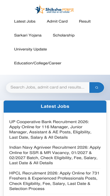 90%A2Z Jankari - Latest Update · Latest Jobs · Sarkari Yojana · Admit Card · Results · Admission · Scholarship · University Update.