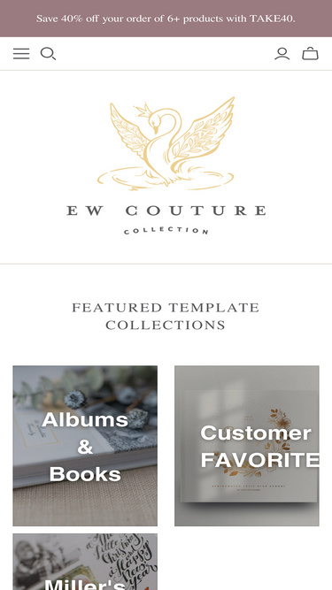 Designed by EW Couture Collection. This product is an instant download, and it will be available to you immediately following checkout. Download links are delivered via e-mail and may take up to 5 minutes to receive. Please make sure to check your spam and junk folders. All the print product templates are designed to be compatible with Miller's Press Printed products, but can be easily changed to fit other lab’s specs and guides. All templates are layered, editable Photoshop (.PSD) files. They are built to be compatible with Photoshop CS and higher, for Mac and PC. To make the files compatible with Photoshop Elements, check out the free ungroup layers action for Elements, on the blog. The templates are designed to be as simple as possible, and are meant for a user with knowledge of layers and clipping masks. Easily change colors and editable text by following the included instructions and/or the tutorials posted on the blog. Please always save and back-up your files. If you don’t receive your download link please send me an email. By purchasing these templates you are agreeing to these terms of use. Templates are for professional use only and are meant for professional photographers for use in their business only as add-on products to their clients or for collateral print or web business use. Due to the digital nature of our products all sales are final and no refunds or credits can be given. Please use the “Email us about this product” link to the left, under the product images, to ask any questions you might have about the template prior to purchase.