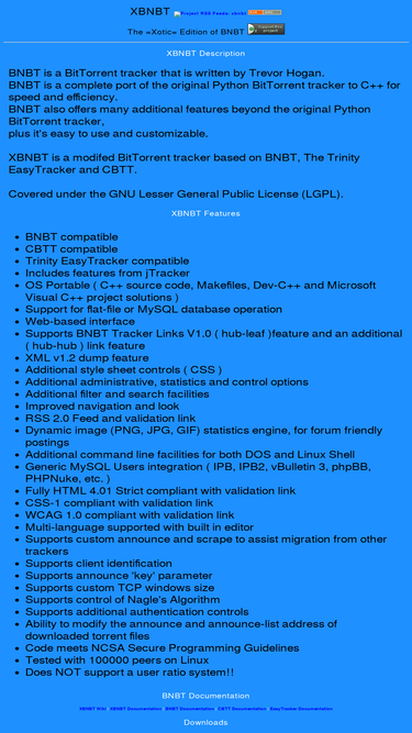 75%XBNBT is a modifed BitTorrent tracker based on BNBT, The Trinity EasyTracker and CBTT.
