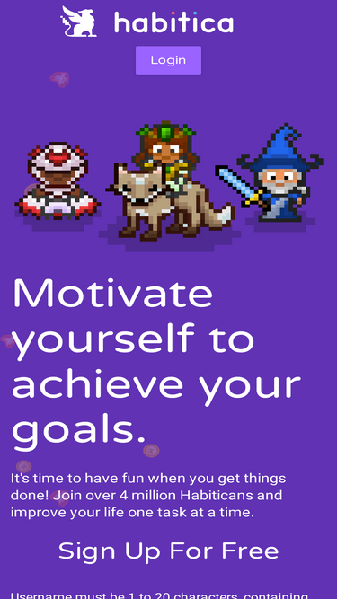 86%habitica is a free habit and productivity app that treats your real life like a game. habitica can help you achieve your goals to become healthy and happy.
