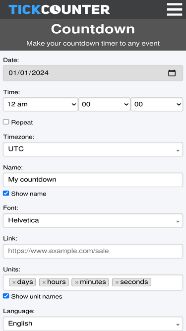 86%Sign up for a free TickCounter account to easily manage your countdowns. It takes just 10 seconds.