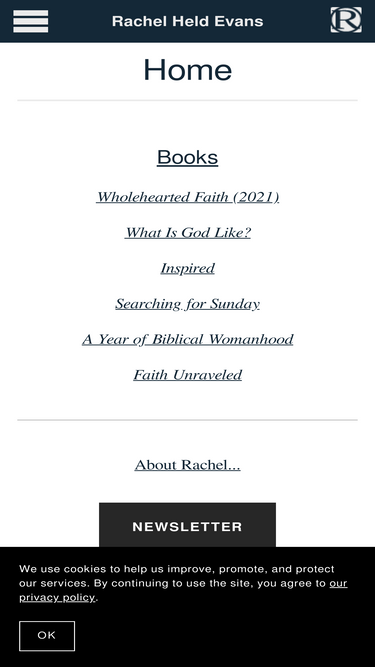 95%Official Web site of New York Times bestselling author and popular blogger Rachel Held Evans. Rachel has been featured in national broadcasts and publications including NPR, Slate, The BBC, The Washington Post, The Guardian (UK), The Times London, and The Huffington Post.