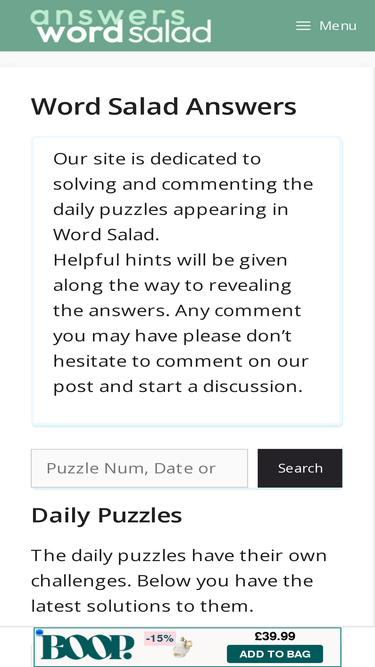 72%Frequently Asked Questions about Word Salad When did Word Salad Launch? The game was launched in February 2024. Is word ... solution »