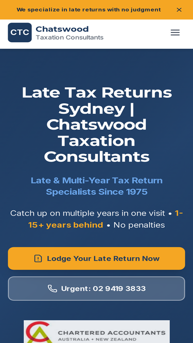 99%Late tax returns Sydney & North Shore specialists. Behind on tax returns? Lodge 1-15+ years overdue in Chatswood. ATO penalty reduction experts near me. No judgment. Call 02 9419 3833