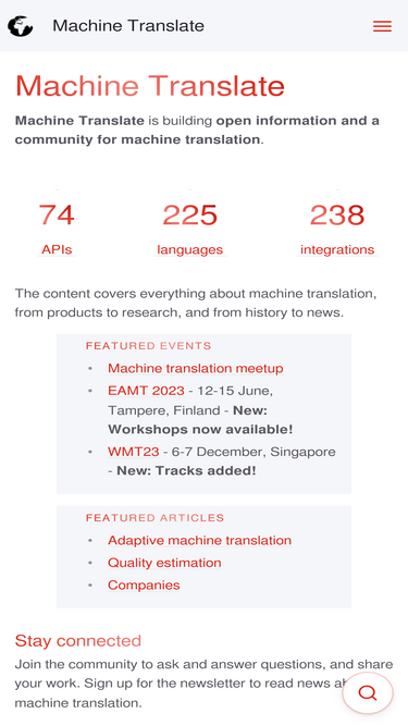 Free and Open Source Machine Translation API. Free to download, offline capable and easy to setup. Run your own API server in just a few minutes.
