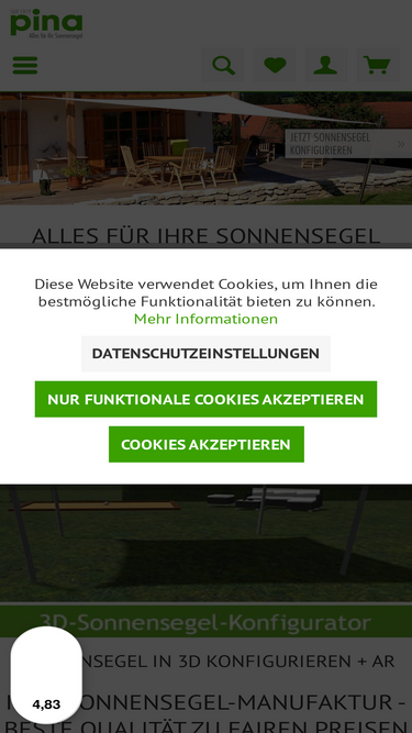 Sonnensegel nach Maß - in wenigen Schritten zu Ihrem Wunschsegel Wählen Sie hier in unserem Konfigurator Ihr Wunschsegel aus und konfigurieren Sie sich Ihr Sonnensegel nach ihren Maßen. Sie benötigen Hilfe? In den "Infopunkten" an jedem der 6 Schritte im Konfigurator finden Sie hinter dem "i" Videos, die Ihnen helfen können, Ihr Sonnensegel nach Ihren individuellen Maßen zu konfigurieren. Was ist die niedrigste Seitenkante? Das ist die Seitenkante, die der höchsten Seitenkante gegenüberliegt. So wissen wir, wie das Wasser bei Ihnen fließen soll. Sie sagen uns über welche Segelecke es abfließen soll und definieren somit die niedrige Seitenkante, die der höchsten gegenüberliegt, wie z. B. am Haus.. Wichtig: *Nehmen Sie sich Zeit und planen Ihr Sonnensegel gründlich und bestellen Sie Stoffmuster, vor allem für die 2 "pattern style" Grüntöne. Warum? Das erklären wir in diesem Video. In dem Konfigurator schauen Sie bei der Maßeingabe von oben auf Ihr späteres, massgefertigtes Sonnensegel runter. Sonnensegel "Viereckig für aufrollbare Anlagen" werden mit Antitorsionsleine als Diagonalewelle gefertigt und sind nur mit diesen Befestigungs-Sets für aufrollbare Sonnensegel zu nutzen, in denen die Aufrollvorichtung im Lieferumfang enthalten ist. Bedenken Sie, dass individuell angefertigte Sonnensegel vom Umtausch ausgeschlossen sind. Mehr hier in der Widerrufsrechtsbelehrung. Hier in unserem Video finden Sie viele Punkte und Hilfestellungen, die Sie unterstützen Ihr Vorhaben bestmöglich umzusetzen. So bestimmen sie den optimalen Schattenwurf Mit dem Laden des Videos akzeptieren Sie die Datenschutzerklärung von YouTube. Mehr erfahren Sonnensegel in Standardgrößem konfigurieren In unserem Standardsegel Konfigurator finden Sie fast alle Marken-Stoffe teilweise preiswerter wie in unserem Sonnensegel nach Maß Konfigurator - fast dieselben Farben und eine ähnlich gute Fertigung. Mehr dazu hier: Sonnensegel in Standardmaßen konfigurieren Mit dem Laden des Videos akze