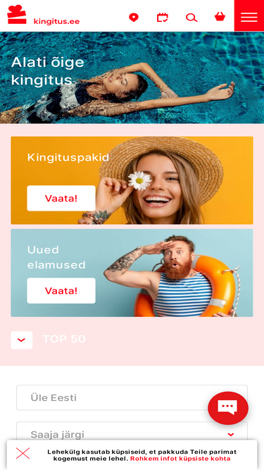 100%Kingitus.ee elamuste kinkekaart Üks kinkekaart – üle 1000 elamuse! Kas otsid kingitust, mis sobiks igaks puhuks ja igale inimesele? Kingitus.ee elamuste kinkekaart on kõige paindlikum ja kindlam valik! Selle kinkides jätad valiku kingisaajale – olgu sooviks lõõgastav spaaelamus,...