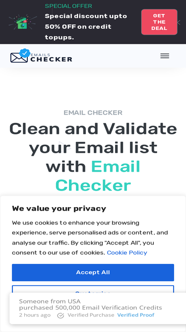 95%Clean your email list for as low as $0.0001 per email. Credits never expire. No monthly fees. Pay only for what you need with our bulk verification credits.
