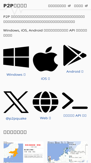 97%緊急地震速報(警報)・地震情報・津波予報の受信、ユーザー同士の「揺れた!」が共有できる無償サービス。Windows, iOS, Android 版, 開発者向け API を公開。