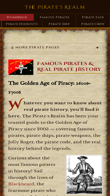 a 'guide to 17th-century piracy,' plus a discussion forum on general historical piracy and nautical subjects.
