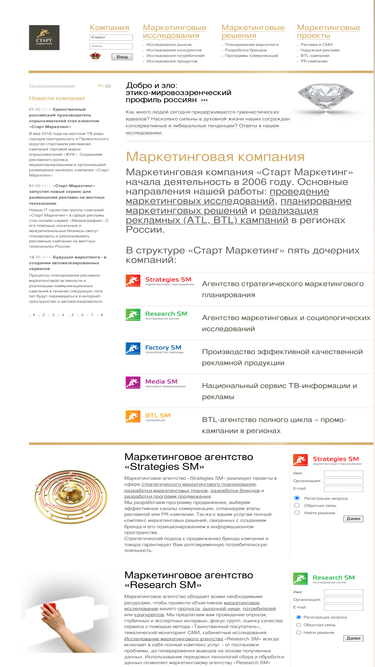 маркетинговая компания старт маркетинг реализует следующие маркетинговые услуги: проведение маркетинговых исследований, разработка плана маркетинга, создание и управление брендами, размещение рекламы в регионах, организация btl-мероприятий.