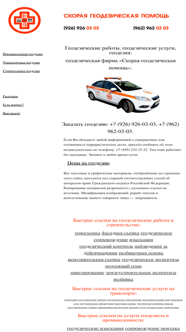 88%геодезические работы: топосъемка, разбивка, фасадная съемка, определение крена, геодезический мониторинг: +7 (926) 926-03-03, +7 (962) 962-03-03.