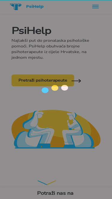 82%Najlakši put do pronalaska psihološke pomoći. PsiHelp obuhvaća brojne psihoterapeute iz cijele Hrvatske, na jednom mjestu.
