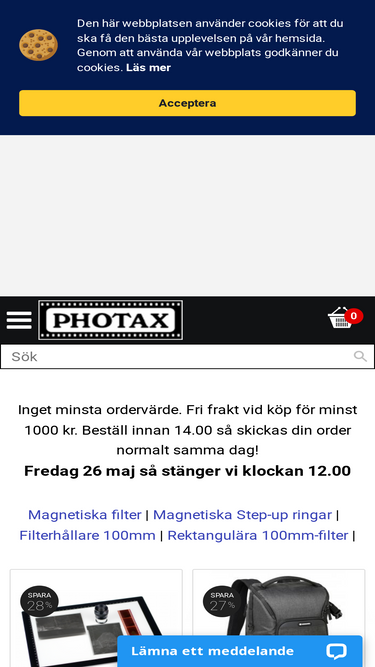 89%Störst i Skandinavien inom analogt! Stort sortiment inom studio och kameratillbehör. Aputure, Foma fotopapper, Fotobestway, JJC , Ilford. Kodak, Lee Filter, Godox blixtar, Kentmere, Tetenal, Viltrox, Visico