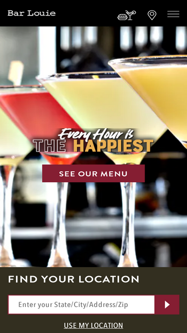 84%Find a Bar Louie location near you. Check out local menus, events, happy hour deals, and food & drink specials.