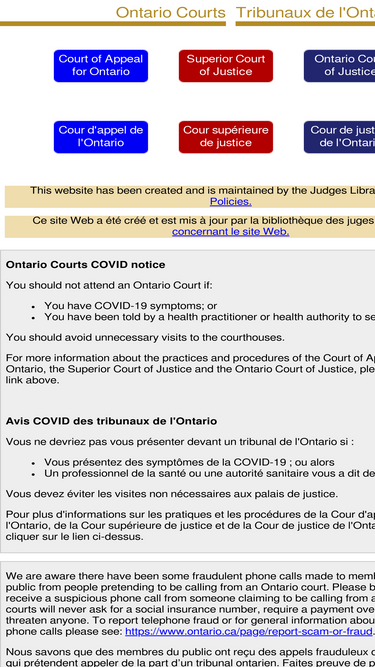 97%Ontario Court of Justice A fair, accessible, and innovative Court that delivers impartial and timely justice, and ensures all participants are treated...Read More...
