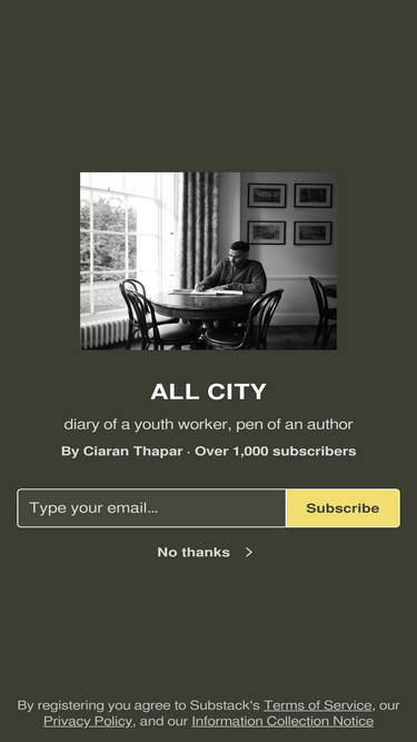 memories from a desk in london. a newsletter about music, food and city life by ciaran thapar. click to read all city, by ciaran thapar, a substack publication with thousands of subscribers.