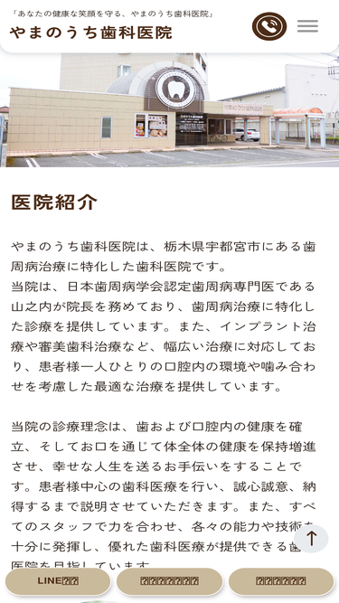 やまのうち歯科医院は宇都宮市・兵庫塚町の歯科医院です。患者さんとのコミュニケーションを大切に、再生治療、インプラント、予防歯科、審美歯科、メンテナンス等、総合的な治療を行っています。最新の歯科用CTによる診断、バリアフリーの院内、キッズスペースもございます。お気軽にご来院ください。