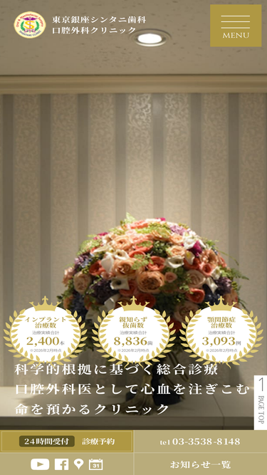 88%口腔外科指導医・専門医の東京銀座シンタニ歯科口腔外科クリニック