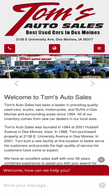Search Used Car, Truck, Van and SUV's at reasonable prices. To find the best vehicle in Des Moines and its surrounding areas visit Tom's Auto Sales.