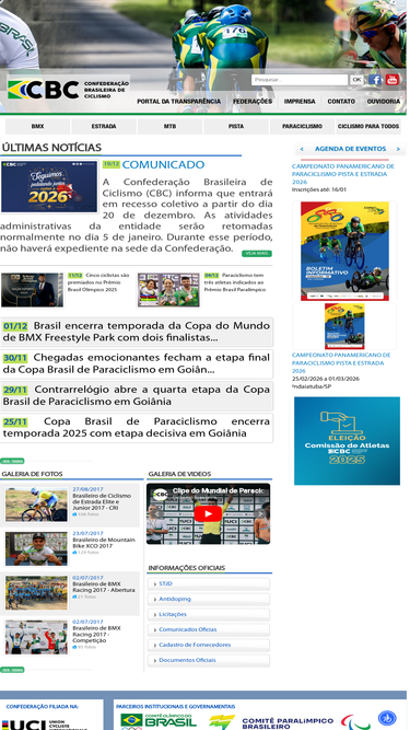 77%site oficial da confederação brasileira de ciclismo que conta com notícias, notas e calendário de eventos.