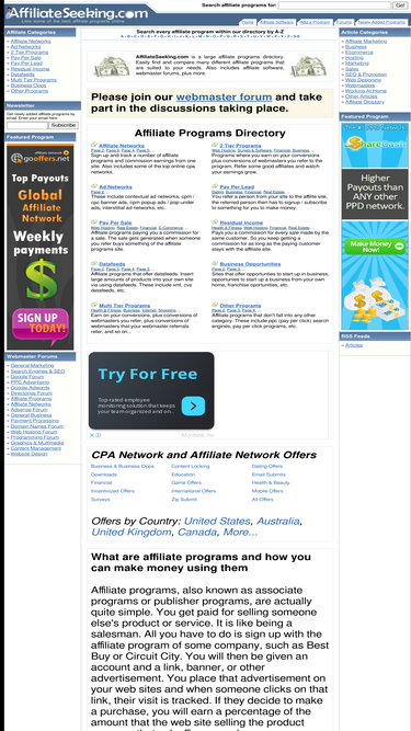 95%a large directory of affiliate programs. includes affiliate networks, ad networks, popups, popunders, pay per click, plus more. easily compare affiliate programs against one another, earn over $0.10 per click with some of the affiliate programs listed.
