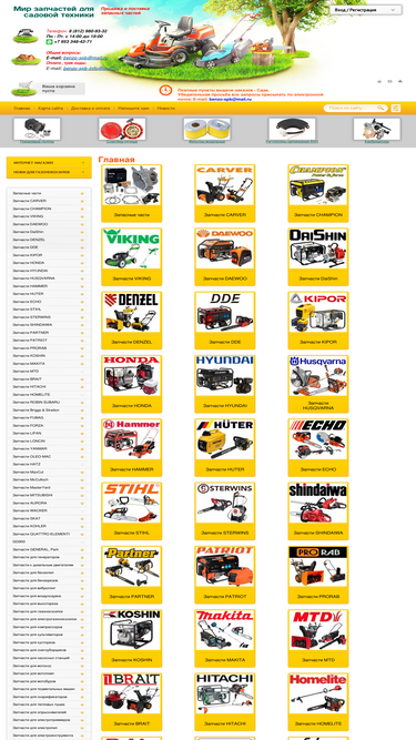 87%мир запчастей для садовой техники - запасные части на бензиновые генераторы, дизельные электростанций, мотопомпы, бензопилы, триммеры, мотокосы, а также на бензиновые и дизельные двигатели. воздушные фильтры, свечи зажигания. запчасти для honda, yanmar,robin, champion, kipor, echo, briggs&stratton, hyundai, lifan.